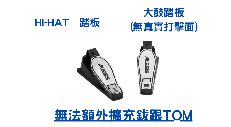 8吋小鼓搭配3個8吋網面中鼓,3個10吋鈸,含兩個踏板。