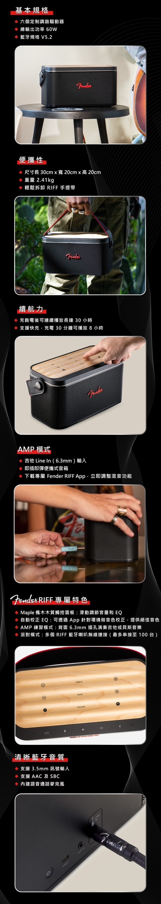 RIFF具有時尚獨特的外觀設計,結合了Fender元素和現代的時尚風格