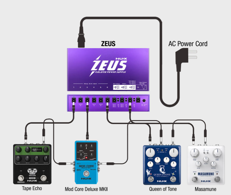 作為一個樂器品牌,NUX已經構建了許多踏板和多種效果。 對於使用高增益失真踏板的使用者來說,電源總是讓人頭痛。 直流電源分接線可以驅動幾個踏板,但接地噪音很容易發生,特別是當你同時連線類比踏板和數位踏板時。 作為行業先鋒,NUX的使命是構建可靠、極低噪音、輕量級、通用電源、大電流、全隔離電源。