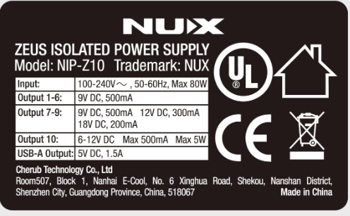 NUX ZEUS NIP-Z10 電供 附線段 100~240V 【宛伶樂器】