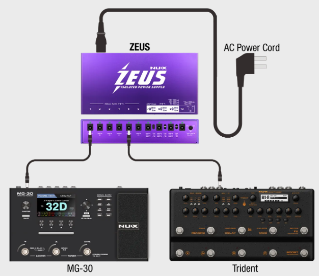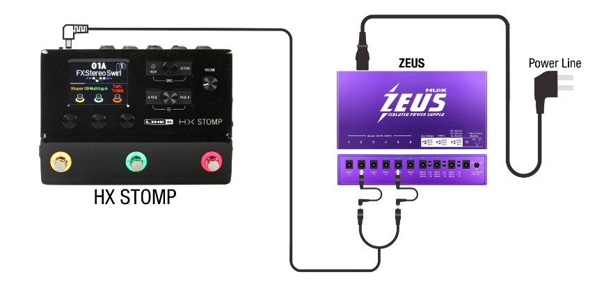 除了常規直流電源線、反向極性電源線、3.5毫米迷你插頭電源線外,宙斯還提供HX電流加倍介面卡。 毫無疑問,宙斯甚至可以駕駛LINE6 HX-STOMP。